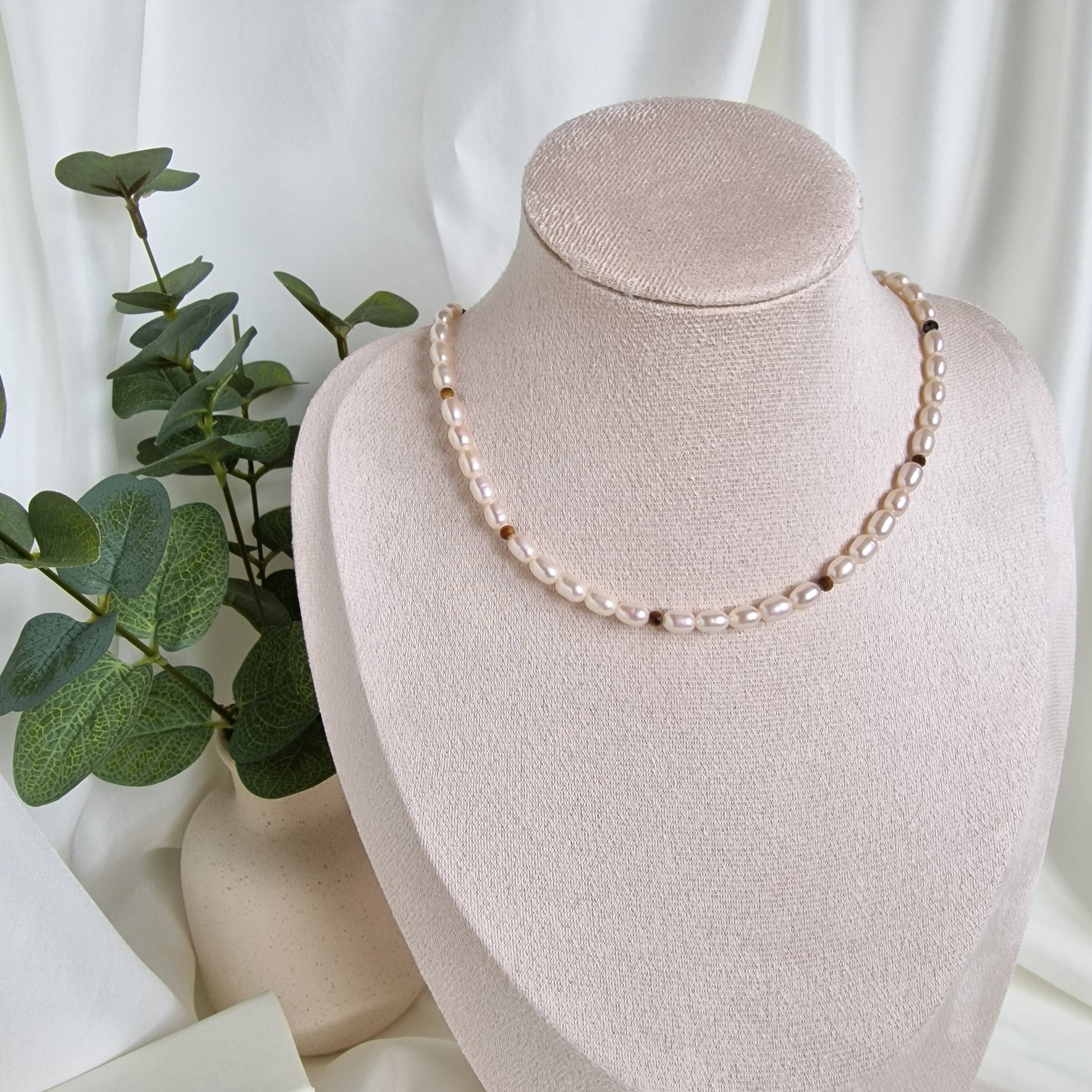 - Natural Freshwater Pearls and tiger's eye gemstones
