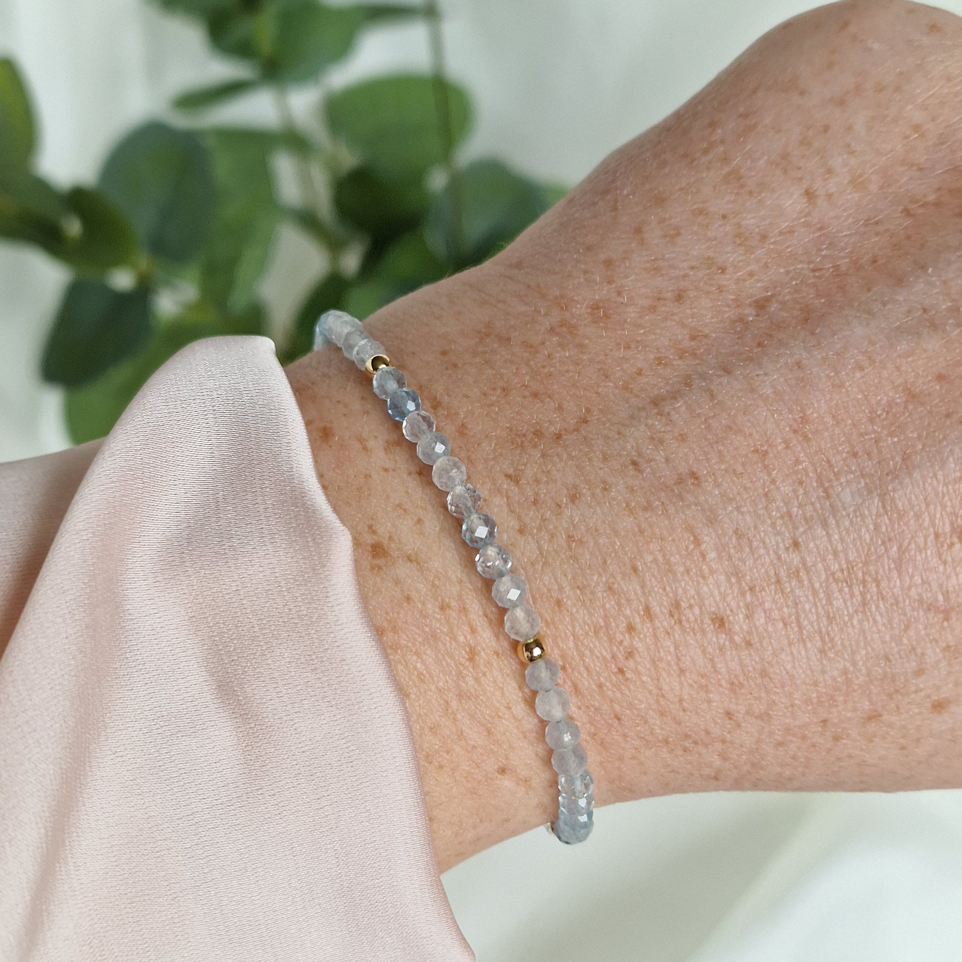 This Aquamarine bracelet is made from natural gemstones and gold-filled materials, perfect for women who love calming, elegant jewellery.