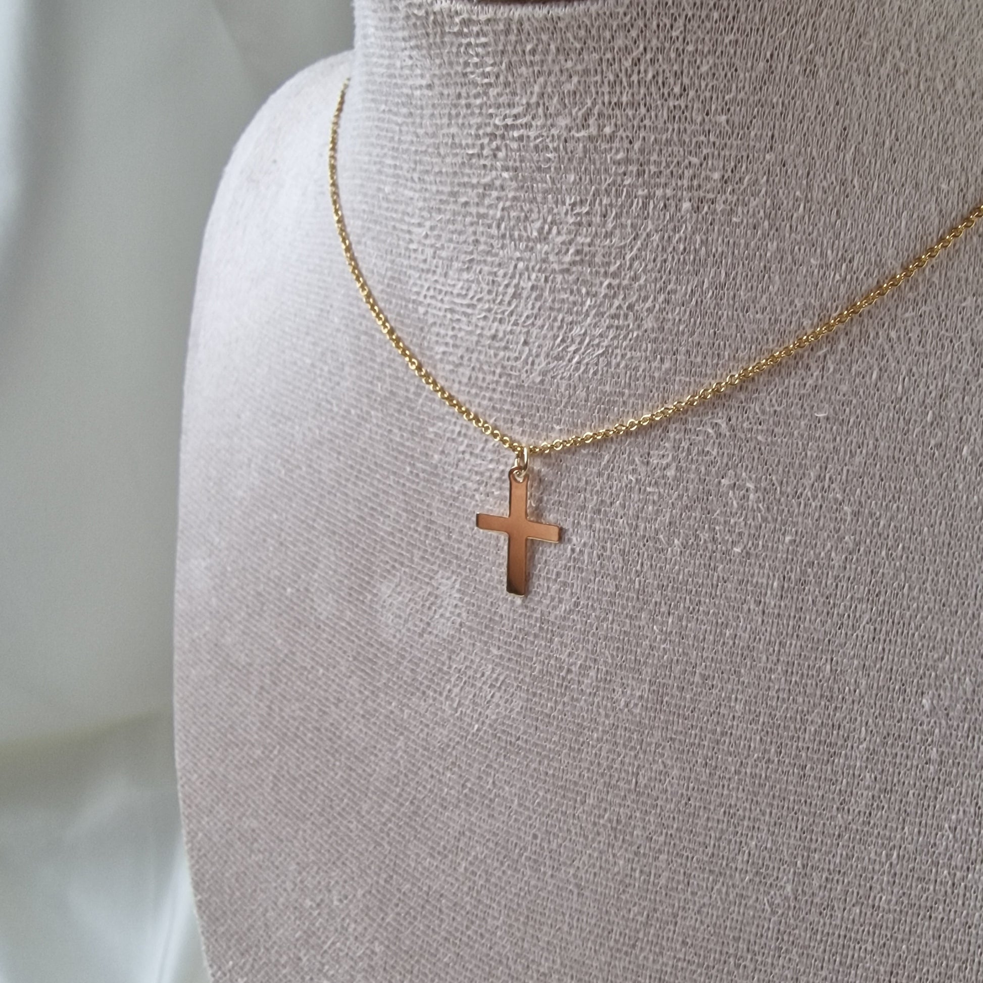 Crafted from a 16-inch gold-filled chain and finished with a 16x10mm gold-filled cross, this piece is a delicate reflection of faith and grace.